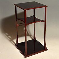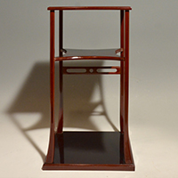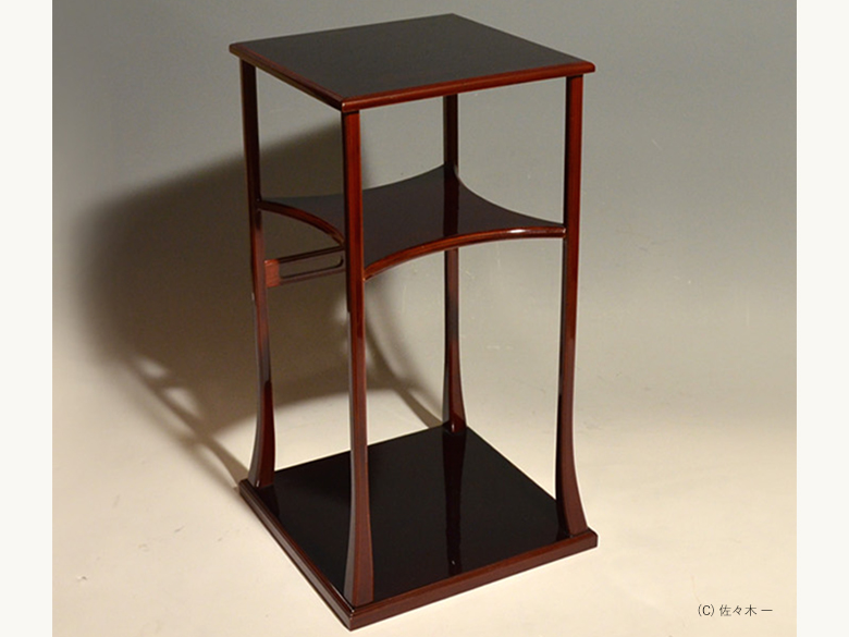 小堀遠州流とは 流祖 小堀遠州 流派について 遠州ごのみ 賛助会員募集 遠州ごのみ 糸巻棚 中段の棚が糸巻形(四辺の各辺が曲線にくぼんだ形)になっており、さらに小の字透かしの意匠がついています。風炉の時期に使用します。 一覧ページへ メニュー