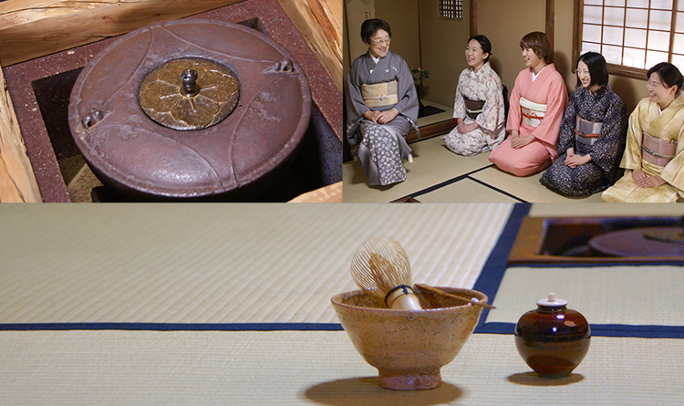 We often say that the essence of the tea ceremony is to “serve the tea and drink it.” This simple expression takes us on a long path of learning. When you first start, it will be difficult to understand the meaning of each step of the tea ceremony, you will come to understand them as you practice. That is, the tea ceremony is the way to entertain guests and allow them to think with great enjoyment as they savor the ambiance of the tea rooms. Through practicing the tea ceremony, we can learn the spirit of hospitality which is the wisdom and the courtesy of life which our predecessors have cultivated. And also we learn how to appreciate tea tools like chawan (tea bowls), chaire or chaki (tea containers), kama (iron pots), mizusashi (water containers), chasen (tea whisk), flower arrangements, kakejiku (hanging scrolls of calligraphy and painting). In addition to learning how to harmonize the tools, we study kaiseki (Japanese course cuisine) and sweets. Learning is very diverse. It is the enjoyment of the tea ceremony to know that the chain of knowledge and experience deepens and expands the understanding of the tea ceremony. And, regardless of age and profession, we can deepen and spread out our connections with irreplaceable people such as teachers and friends. We are happy to offer you the opportunity to do so.