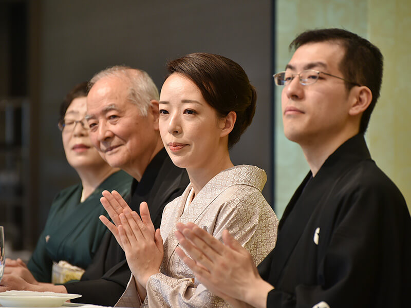 左から、家元夫人、小堀宗圓家元、小堀宗峯家元嗣、小堀宗晋