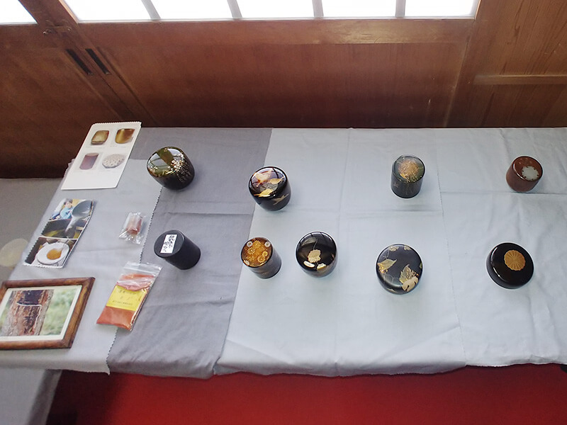 日頃、手に取っている茶器に使われている漆が縄文時代から使われている事、またその採取方法や、蒔絵技法、漆道具の取り扱い方や手入れの方法など、普段あまり聞く事のない漆の知識を改めて学ぶ、貴重な機会となりました。