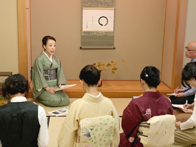 入門者には、基本的な所作の丁寧なご指導。日頃見逃しがちなポイントを実技とともに、和やかな雰囲気の中、活発な質疑応答も交わされました