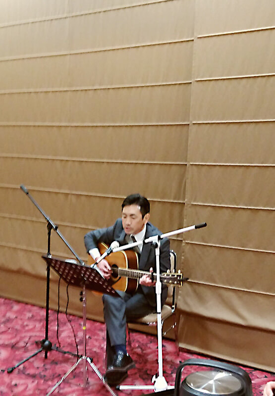 陶芸家の弾き語りは、本職顔負けの歌唱力で出席者を魅了。