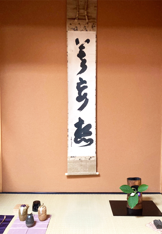 床は千宗旦参禅の師であった清巌筆「莫妄想(まくもうぞう)」。あらゆる不安は妄想から始まるゆえ、思惟分別することなかれ、今という時を十分に生くべしと説く禅語です。何事も不安の多いこの時代に、示唆に富む言葉です。