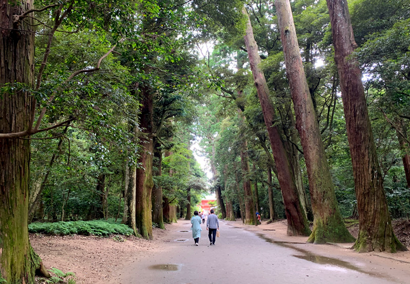 ちょうどお茶を点てている最中だったでしょうか。ゴロゴロゴロ・・・と大きな雷鳴が轟き、ザアーという音とともに大粒の雨が降ってきました。檜皮葺屋根に跳ねるように当たる雨音を聴きながら献茶を行い、片付けを終えて拝殿を出ましたら、さわやかな風が鼻先を抜ける、雨上がりの青空。