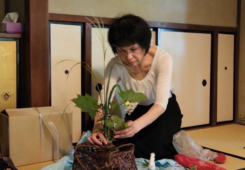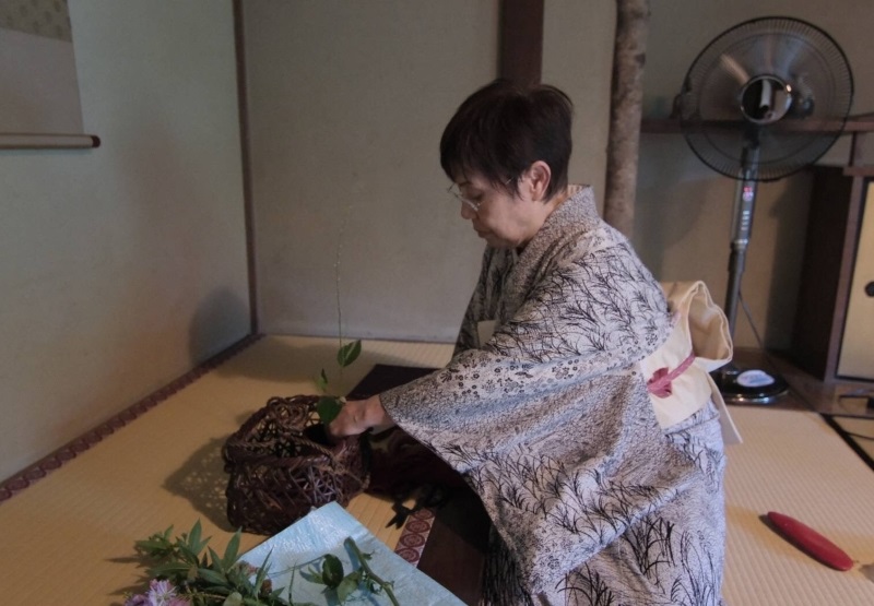 私は4席のうちの1つのお席で午前の部の席主を仰せつかり、初めて席主をさせていただきました。 当日はお道具を箱から出すところから始めて皆様にお教えいただきながら花活けをし、お客様を迎えるための準備をいたしました。