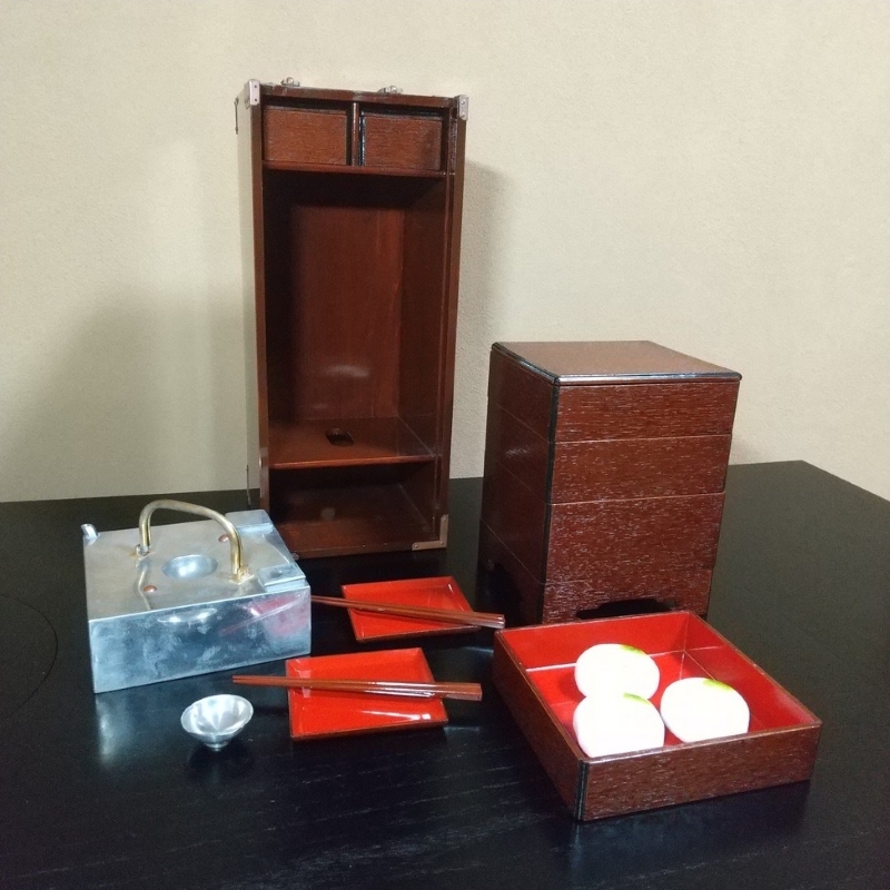 尾上菊五郎家が、使っていたといわれる『遊山箱』お重に御料理を詰め、錫の酒器に銘酒を入れて、お花見などで楽しんだのでしょうか・・・?
