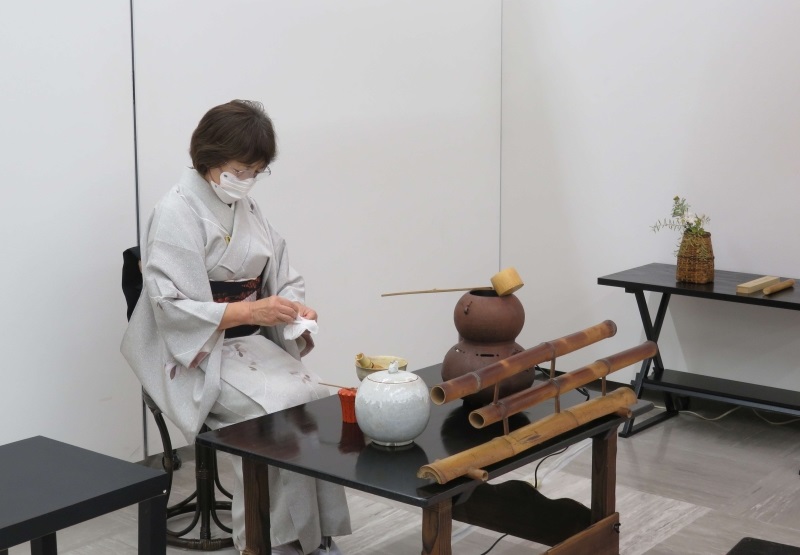 11月25-26日の二日間、東松山市文化祭にて茶華道連盟の添え釜が行われました。