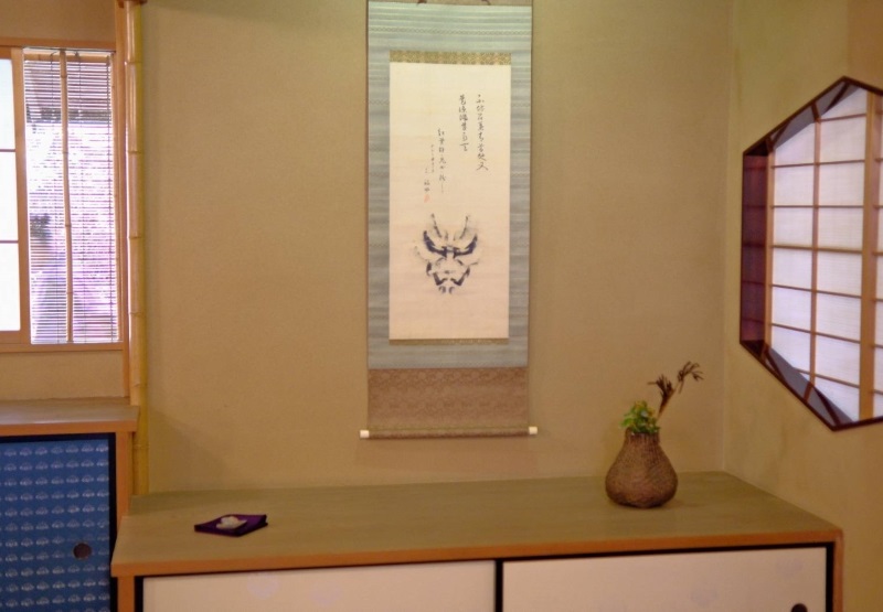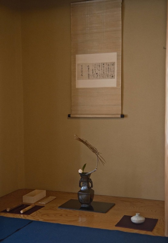 金子さんが大好きな大徳寺と、小堀遠州流のお家元家がどう繋がるかと思ったら、まず掛軸に 小堀和泉守と吉良上野介の消息が掛かっていて、「忠臣蔵」が主題の薄茶席とコラボだ‼とびっくり!