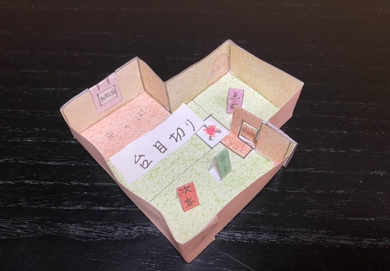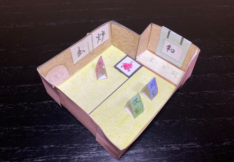 その後、池田宗弓様(東京支部)が彩色まで施され、素敵な茶室に仕上げて下さいましたので、ご紹介致します。