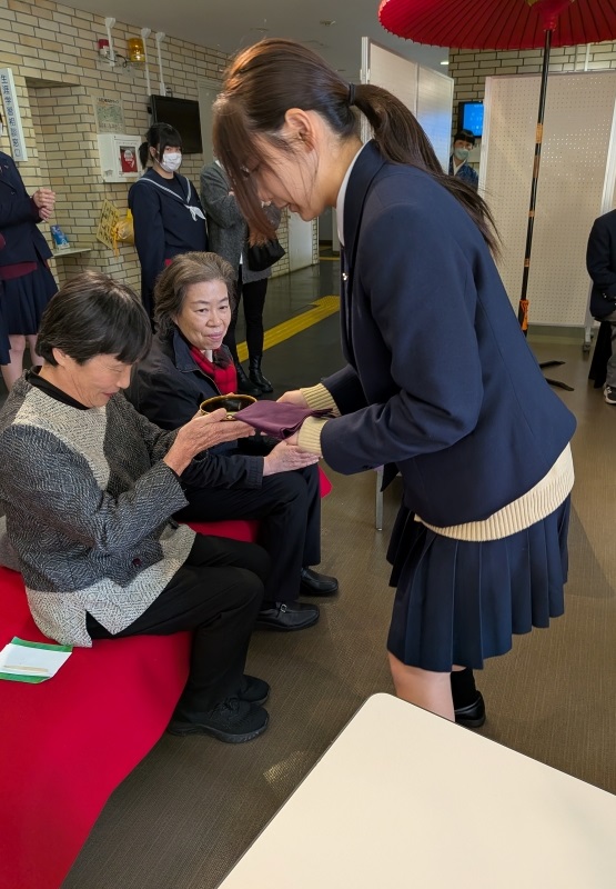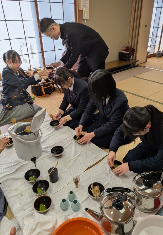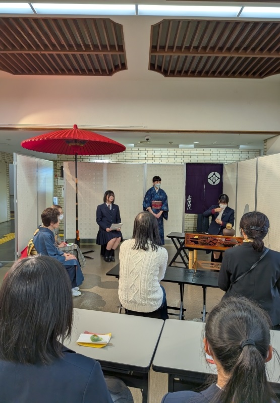 生徒自身が友人に茶券を売ったり、学校の先生方や家族に伝えたりしていて、100人を超える方々が茶席に来られ、見守っていただくことができました。それが生徒の励みになり、緊張しながらも楽しい表情もうかがえました。