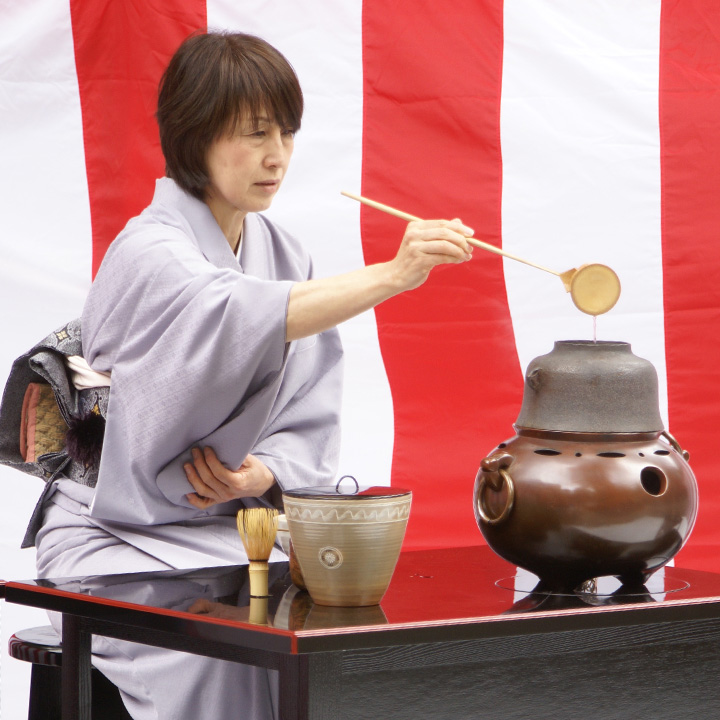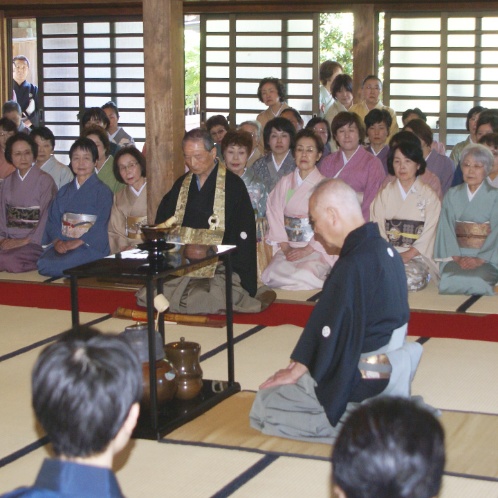 茶室だより 小堀遠州流松籟会の会員はふだんの稽古以外にも、年間を通じて茶会などさまざまな活動をしています。こちらでは、全国で行われた茶会やイベントの会員レポートをご紹介します。 2019年 2018年(平成30年) 2017年 平成30年鹿島神宮献茶奉納式 鹿島神宮の「武道の日」にちなみ、献茶奉納式を行いました。 東京支部6月10日 第32回柳営茶会 徳川幕臣の集まり「柳営会」。不昧軒にて濃茶席を担当しました。 東京支部6月2日 平成30年遠州忌同門会 楓の間 家元席(濃茶) 東京支部4月28日 平成30年遠州忌同門会 月窓軒 東京支部席(濃茶) 東京支部4月28日 平成30年遠州忌同門会 艸雷庵 神奈川支部席(立礼・薄茶) 神奈川支部4月28日 平成30年遠州忌同門会 不昧軒 青年部席(薄茶) 青年部4月28日 香取神宮献茶奉納式 千葉支部4月14日 メニュー