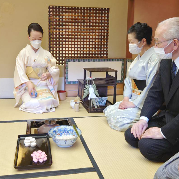 令和四年 家元初釜 2 年ぶりとなる初釜を、帝国ホテル茶室「東光庵」にて執り行いました。 家元1月16日